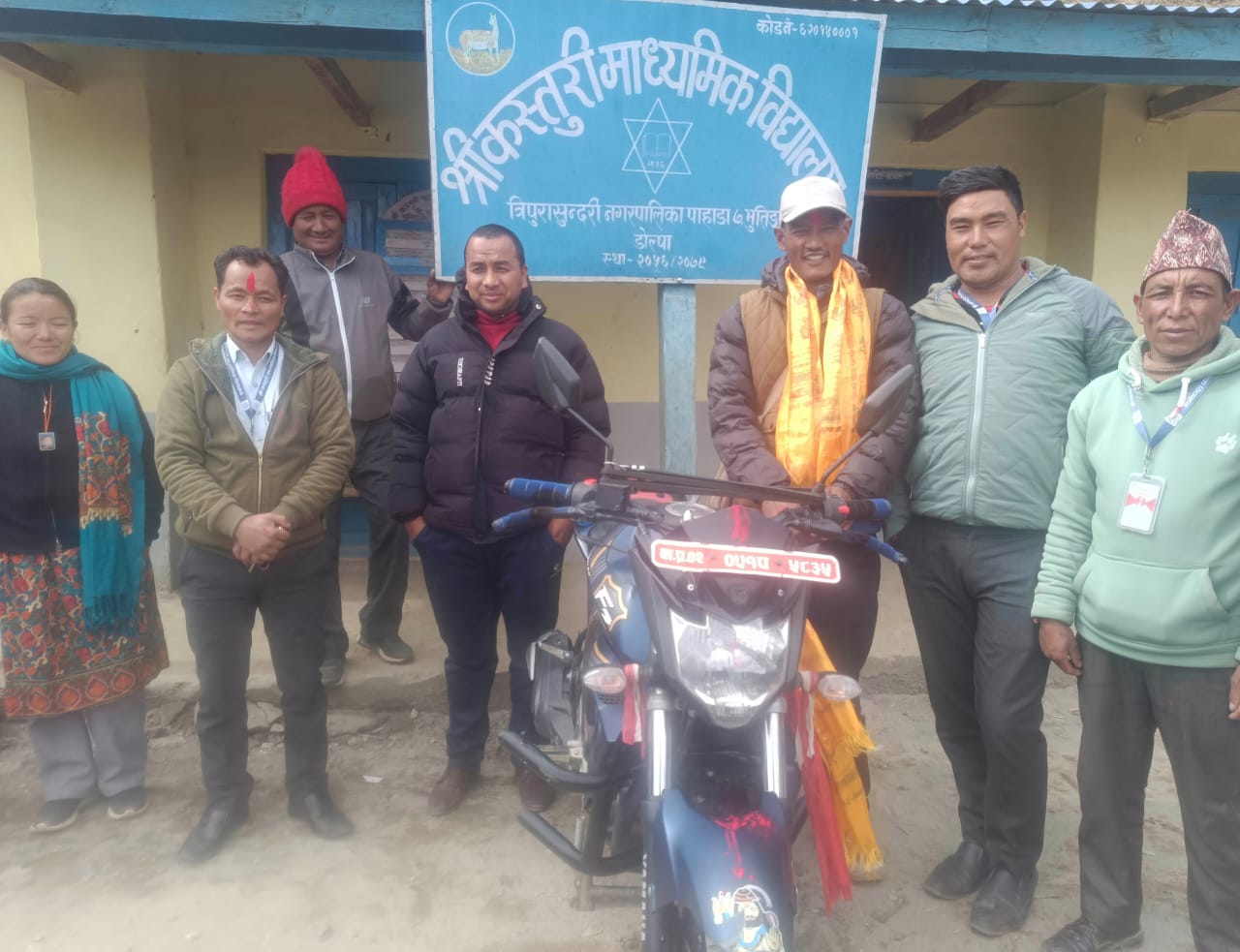 उनले निर्वाचित भए लगत्तै त्रिपुरासुन्दरी नगरपालिका–७ पहाडास्थित कस्तूरी माध्यमिक विद्यालयलाई मोटरसाइकल खरिदका लागि २ लाख रुपैयाँ सहयोग गरेका छन्।